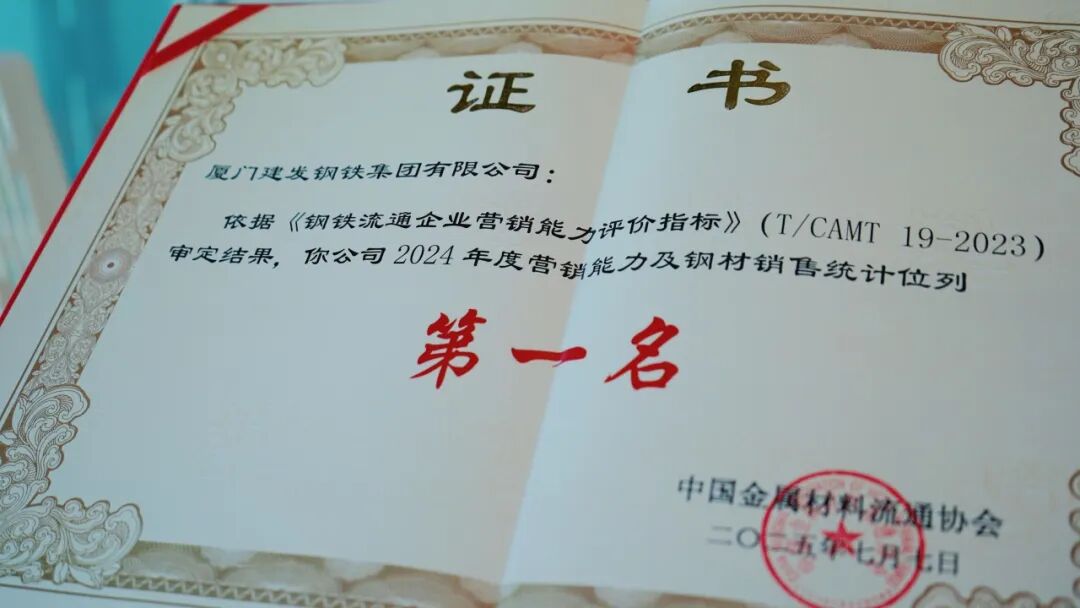 榮耀時刻 | 建發(fā)鋼鐵再獲中金協(xié)營銷能力及鋼材銷售統(tǒng)計第一名